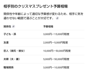 クリスマスプレゼントの予算なども