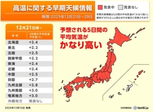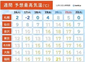 来週は例年よりも3℃近く