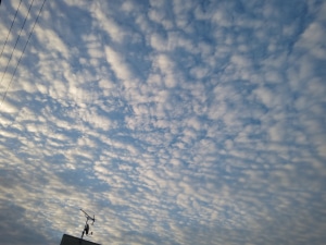 ひつじ雲と朝日のコントラストが