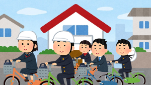 中学生の自転車集団に